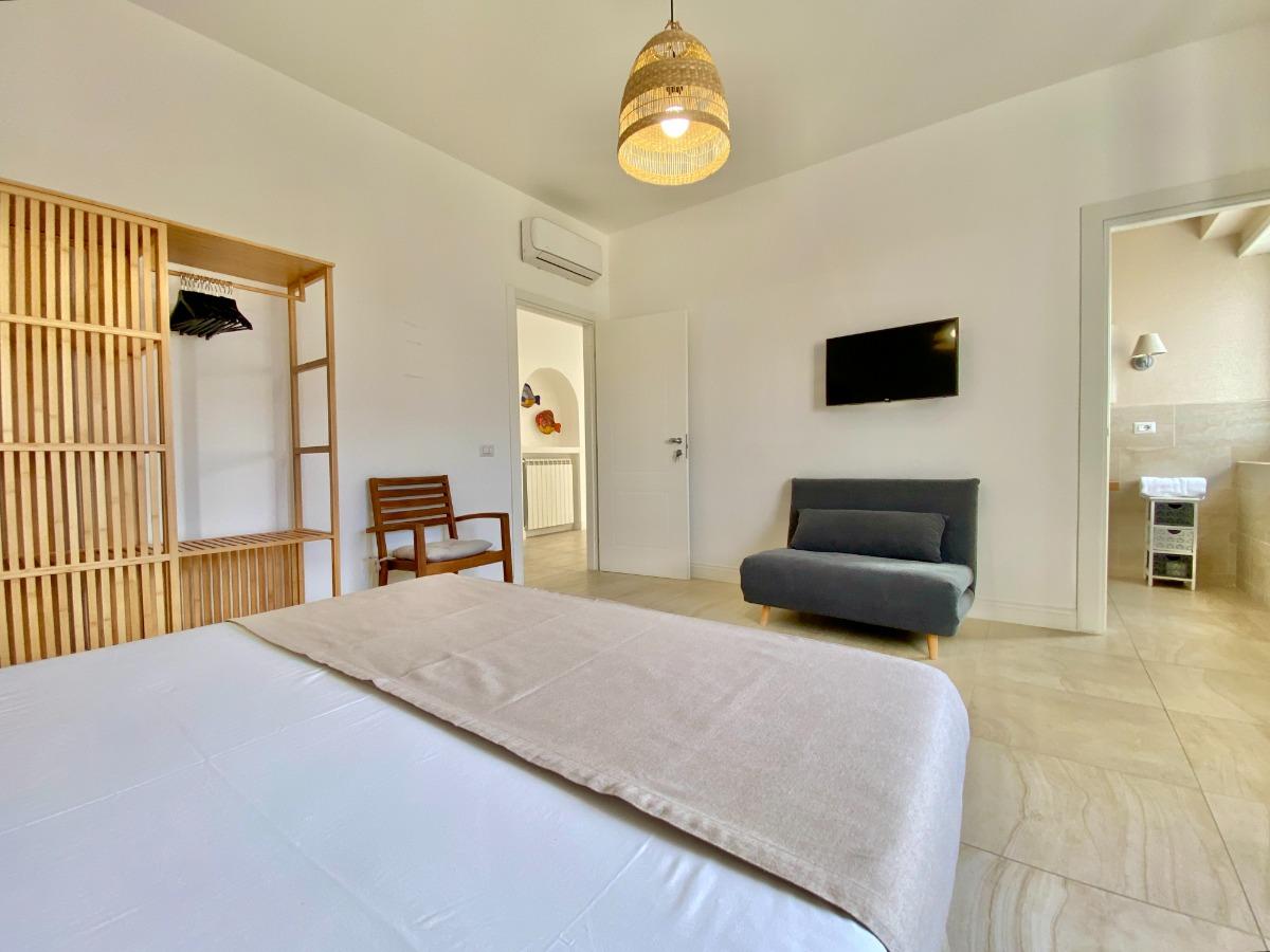 Recentemente ristrutturata, Maison Sciscì occupa il primo piano del palazzetto di famiglia, costruito negli anni ’70 da nonno Pietro. L’ambiente è curato nei dettagli, con uno stile contemporaneo ispirato al mare, dominato da tonalità sabbiose che creano un’atmosfera luminosa e rilassante.